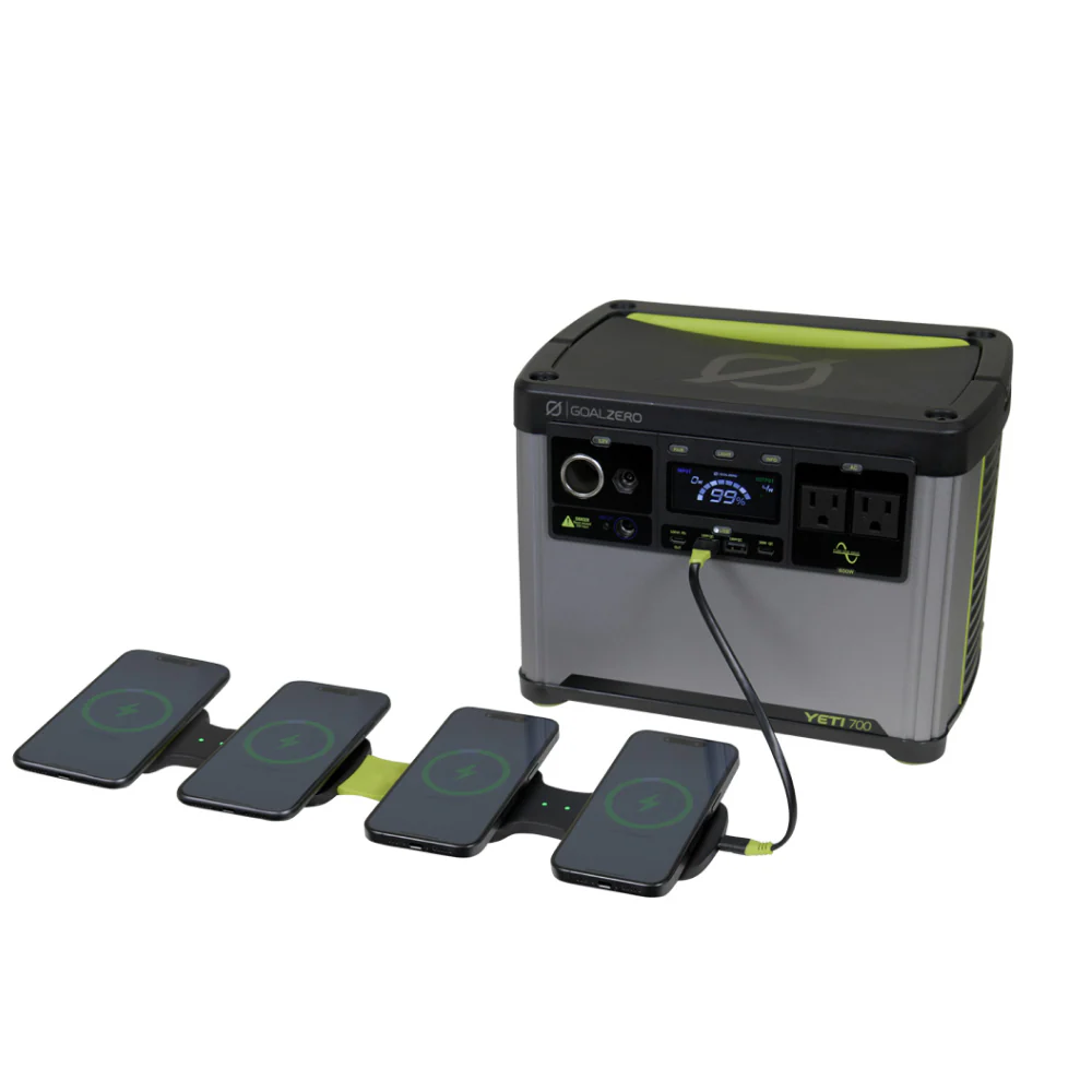 Friends don’t let friends run out of battery. Just plug the MagSafe-compatible Basecamp into a power station or wall outlet to fast-charge 4 devices at the same time!