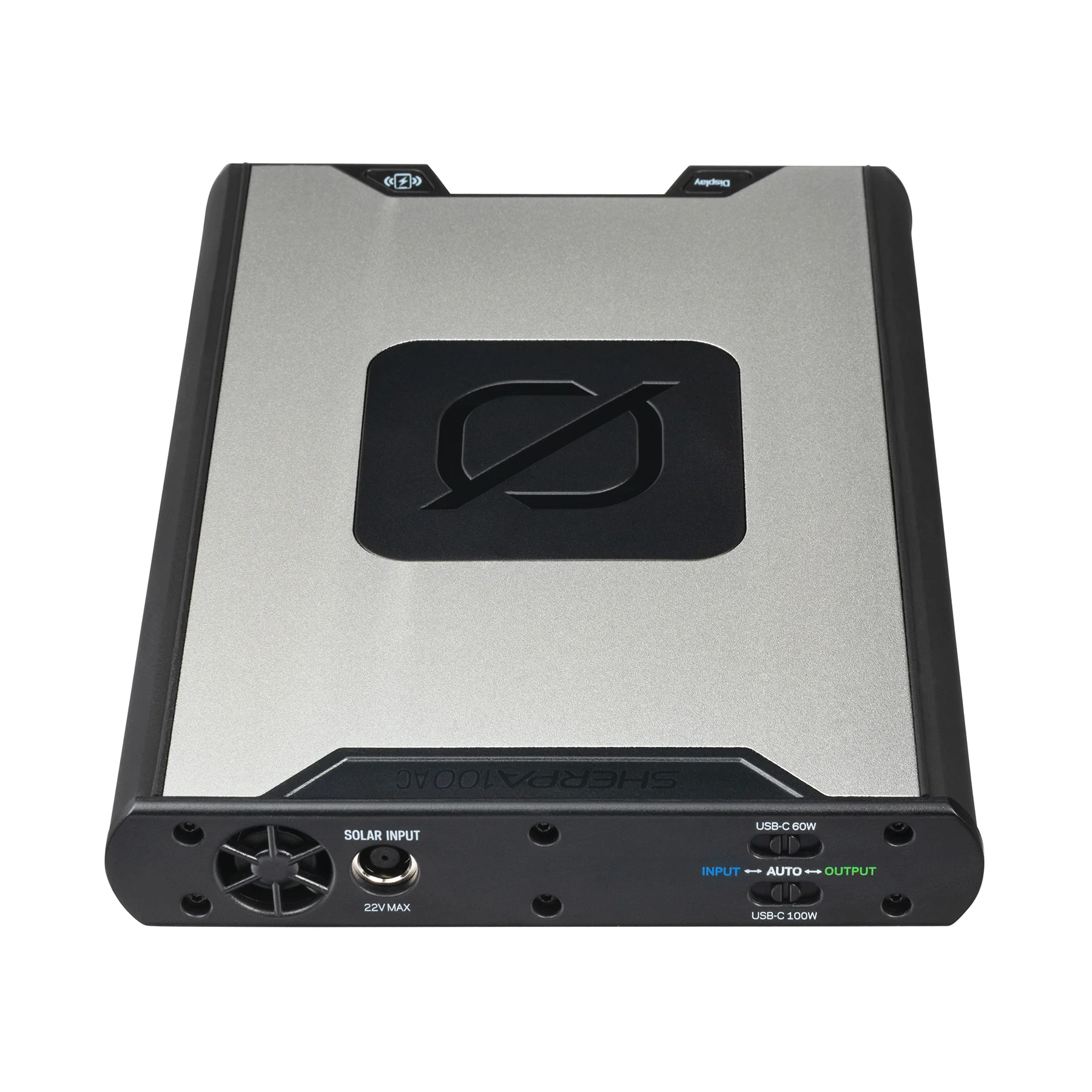 - Solar Charging port (input, 8mm): 14-22V (60W max)
